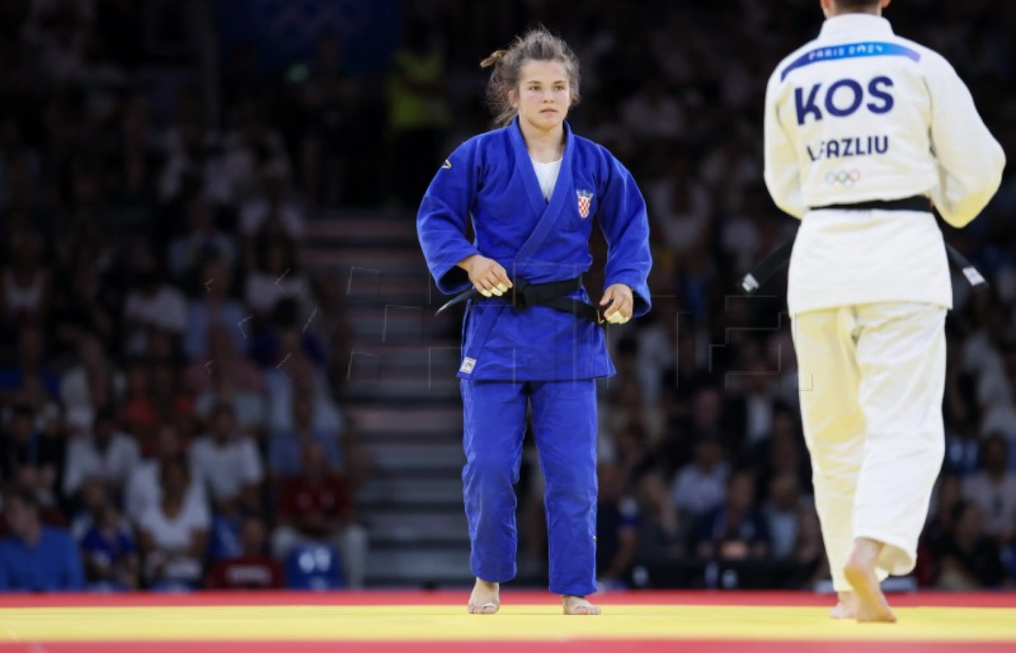Hrvatska džudašica Katarino Krišto poražena je susretu za broncu kategorije do 63 kg na Olimpijskim igrama u Parizu od kosovske džudašica Laure Fazliu "zlatnim bodom". Kaštelanka je prvo deset sekundi slavila broncu nakon svoje dobre akcije i boda, da bi suci pregledom snimke presudili da je Krišto imala nedopušteni zahvat ispod pojasa, što joj je bla treća opomena i kraj snova u bronci. Katarini nisu dosudili niti wazari ranije u borbi i dojam je da je članica solinskog Dalmacijacementa oštećena u borbi za broncu, a hrvatski džudo lišen povijesne, prve medalje.