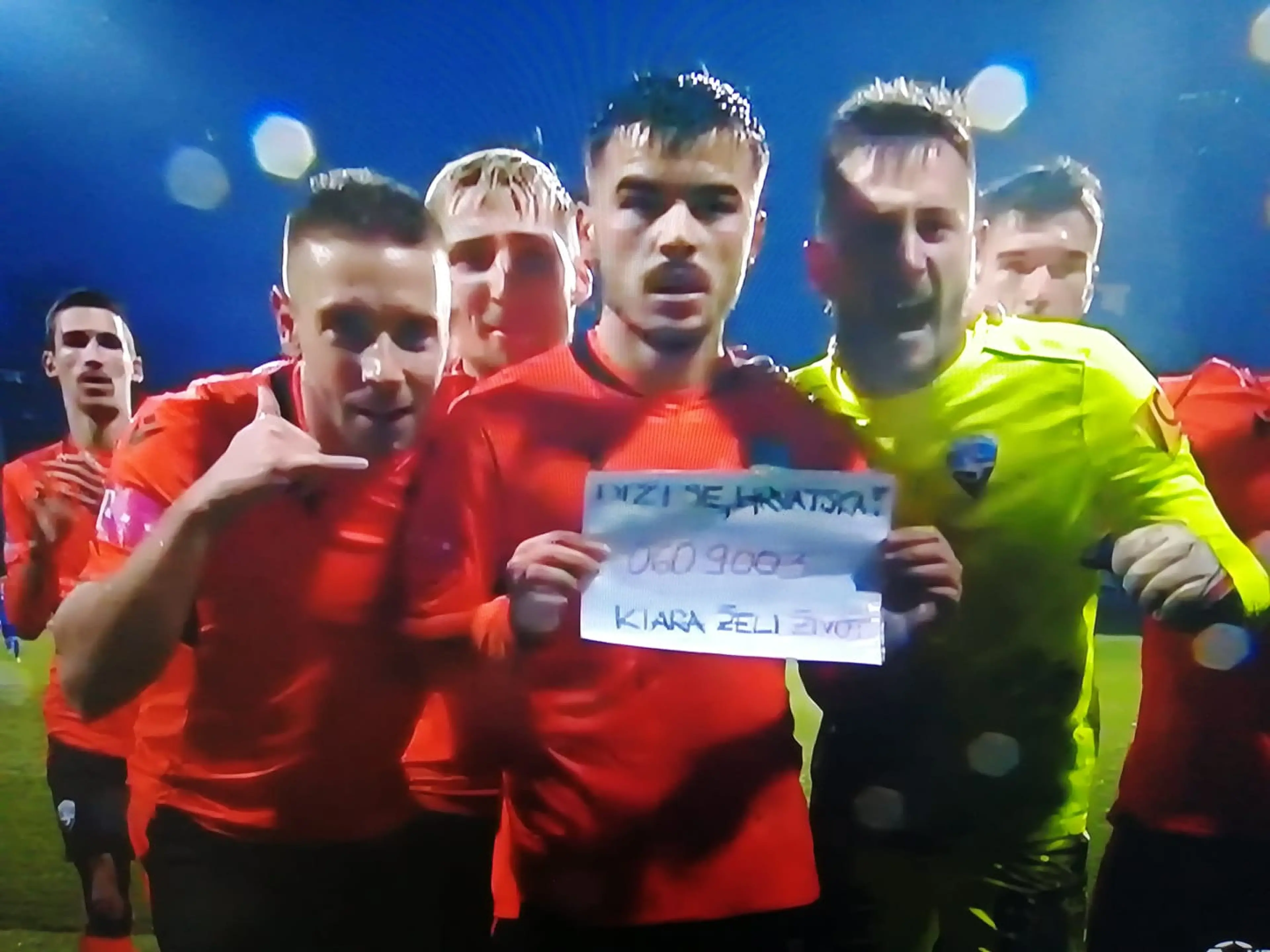 Zajedno sa suigračima otrčao je do kamere iza domaćeg gola držeći unaprijed pripremljeni papir na kojem je pisalo: Diži se Hrvatska! Kiara želi život, uz istaknuti broj telefona na koji se može zvati i donirati sredstva (060 9003).