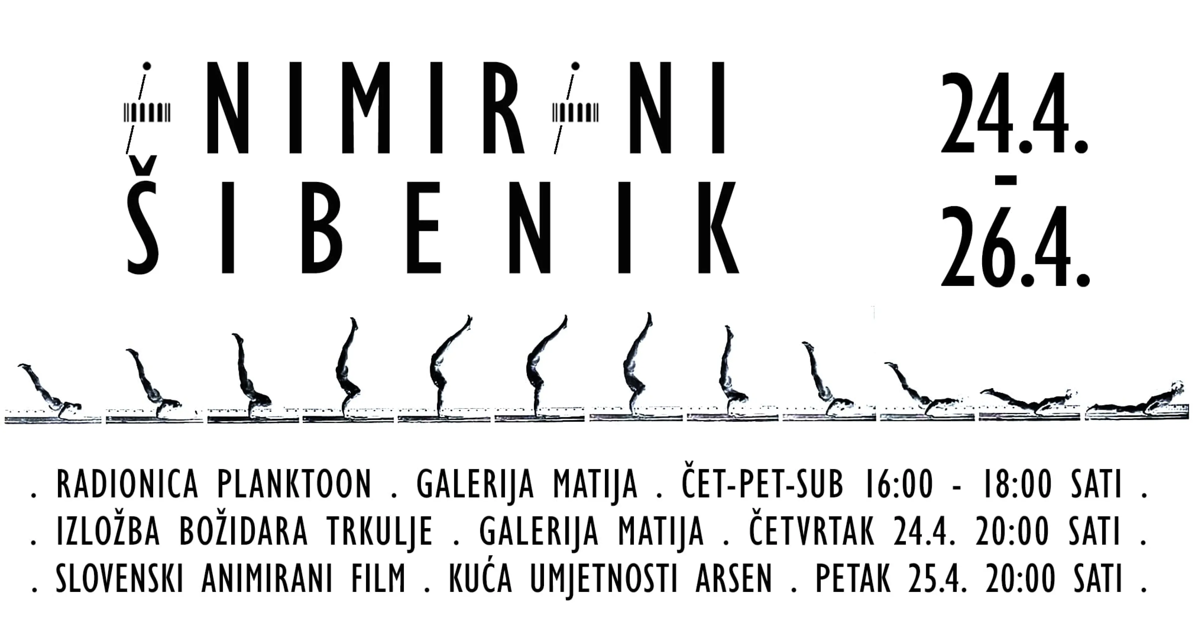 ‘Za prvo izdanje koje će se održati od 24. do 26. travnja pozvali smo umjetničkog direktora ANIMATEKE, međunarodnog festivala animiranog filma, IGORA PRASSELA i redatelja i autora animiranih filmova BOŽIDARA TRKULJU. Tijekom ova tri dana u Šibeniku posvećena animaciji održavat će se i RADIONICA ANIMACIJE ZA MLADE pod vodstvom iskusne mentorice LAURE MARTINOVIĆ’, kažu organizatori.