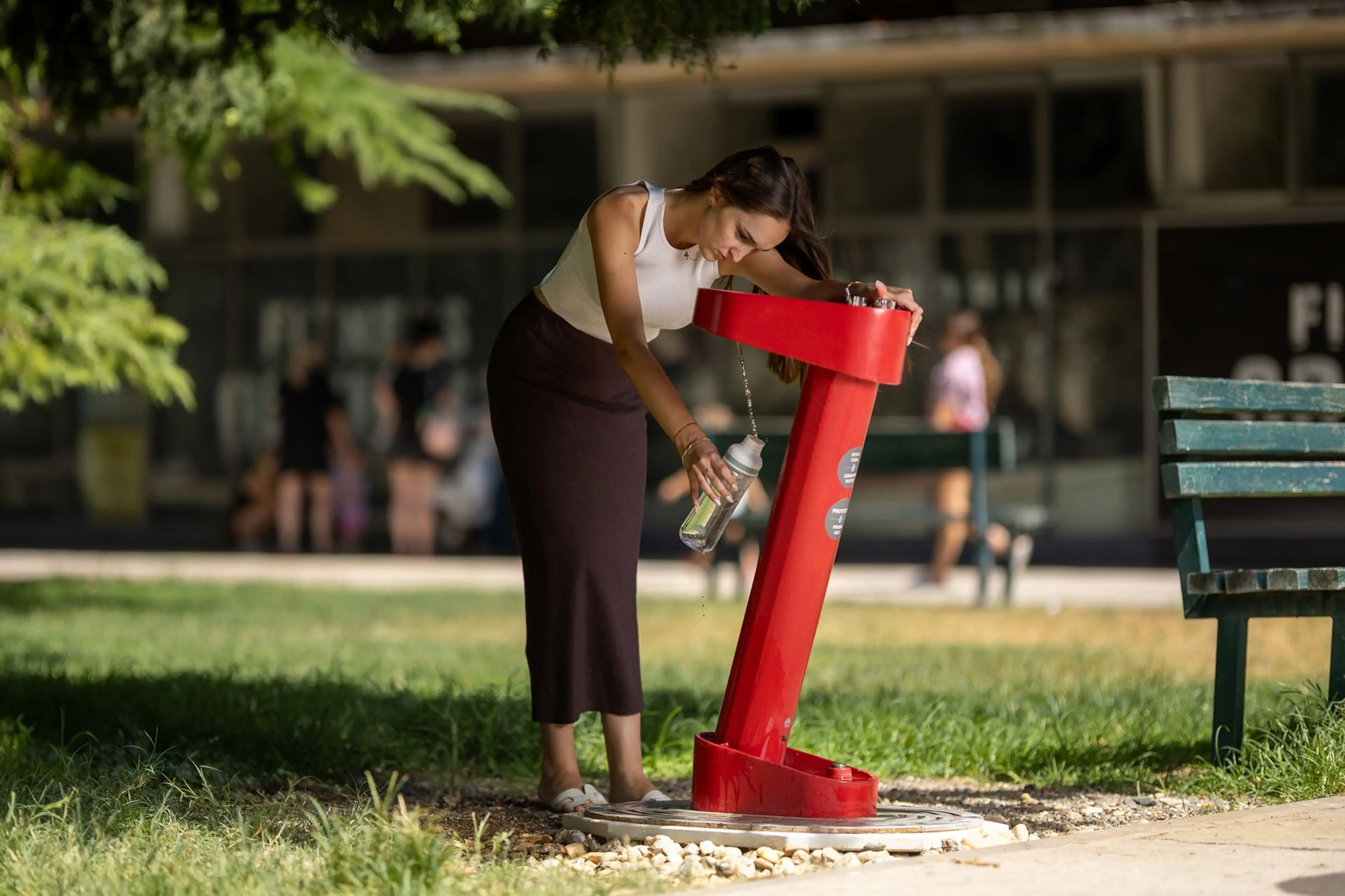 Nova česma izrađena je od čeličnih industrijskih cijevi u tri različita promjera, spojenih zavarivanjem i vijcima u elegantno zakrivljenu formu. Estetski minimalistička, ali funkcionalno izuzetno bogata, česma omogućuje tri načina korištenja: za izravno pijenje vode, za punjenje boca te za utaživanje žeđi kućnih ljubimaca, za koje je osigurana zasebna dovodna cijev s čistom, svježom vodom.