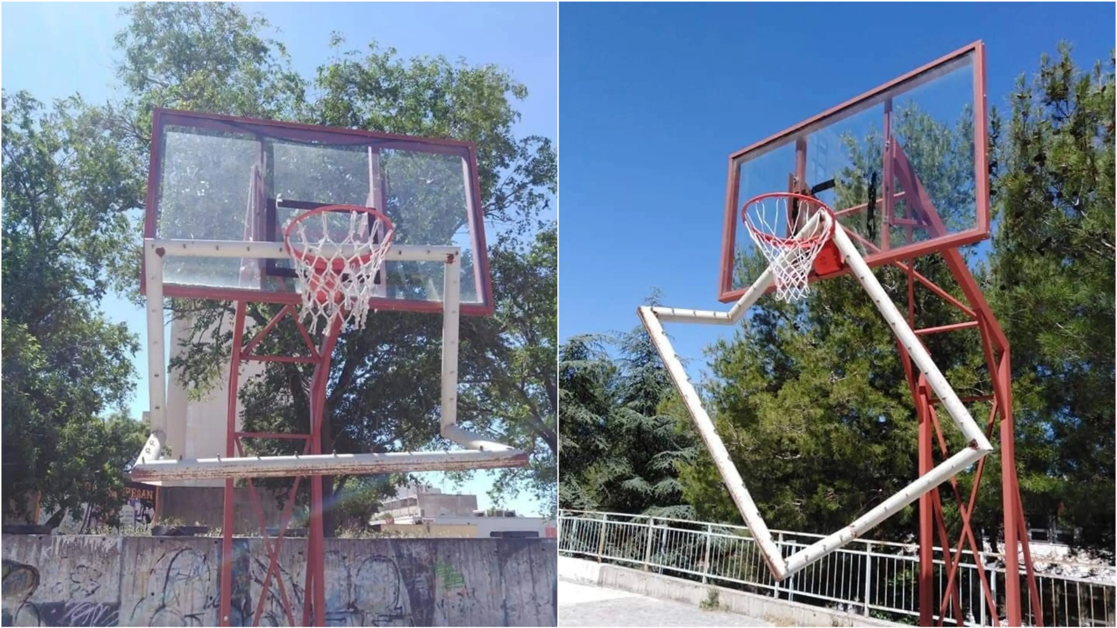 Fotografije nam je poslao čitatelj, a na njima se vidi kako je netko pokušao golom pogoditi koš, ili košem gol...kako bilo, ovaj potez na igralištu kod škole na Šubićevcu je za svaku osudu.