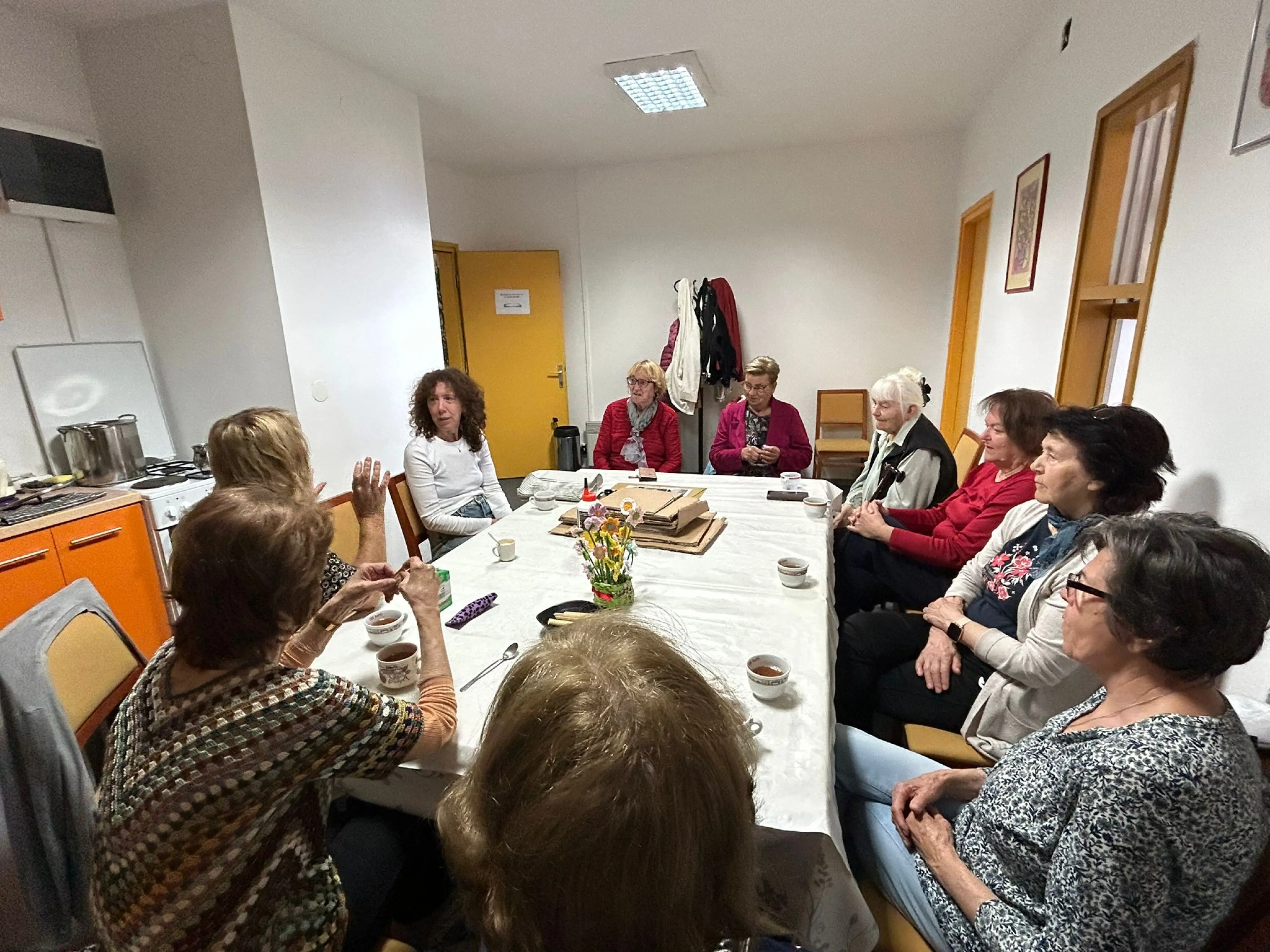 Na radionici je sudjelovalo 10 polaznica treće dobi, neke s poteškoćama fine motorike. Likovni zadatak bio je osmisliti i izraditi u reljefu od kartona kućicu s prozorom i likom na njemu, a potom sve obojiti akrilnim bojama.