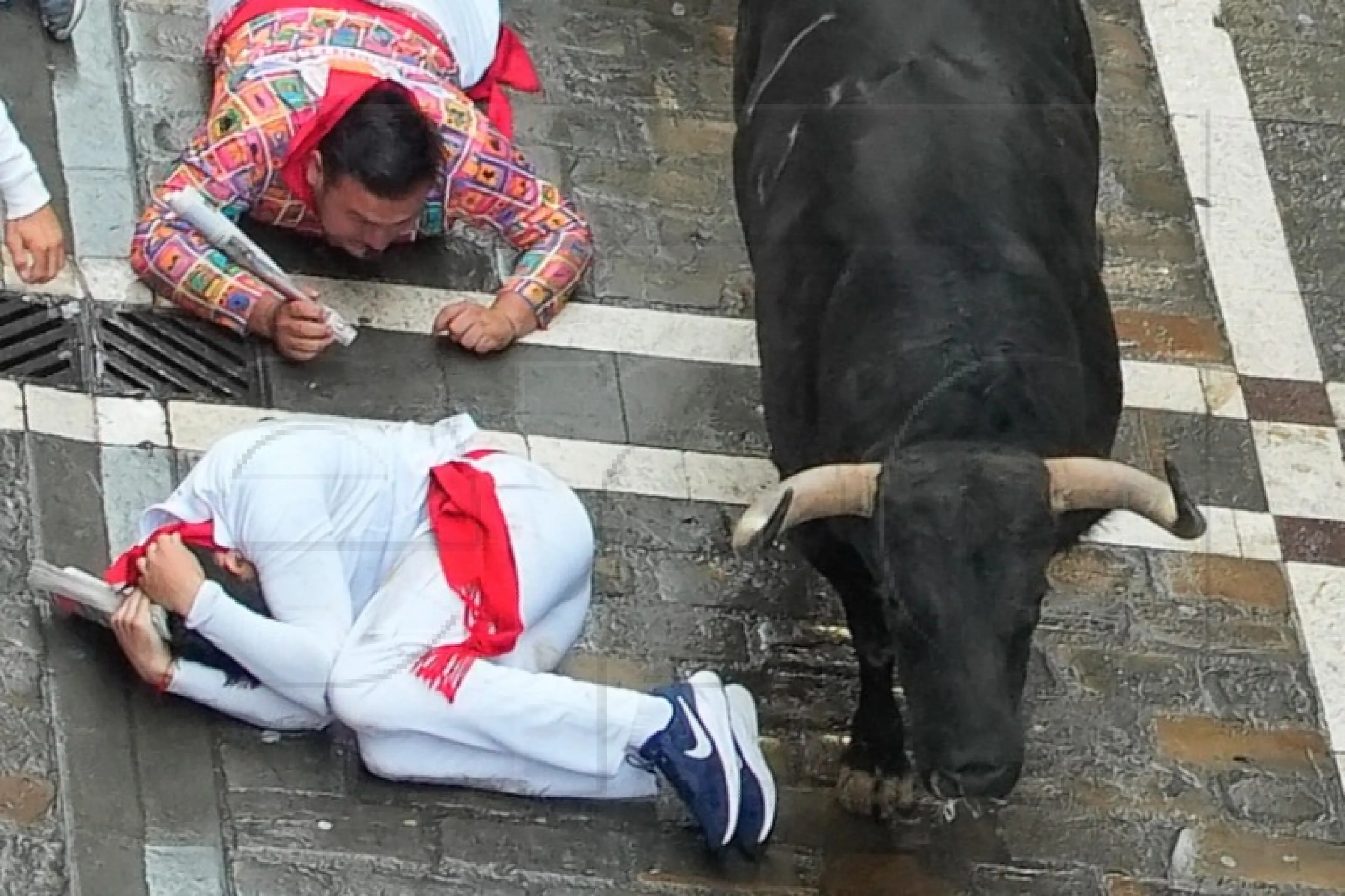 Dva bika su se poskliznula i pala na mokru kaldrmu.